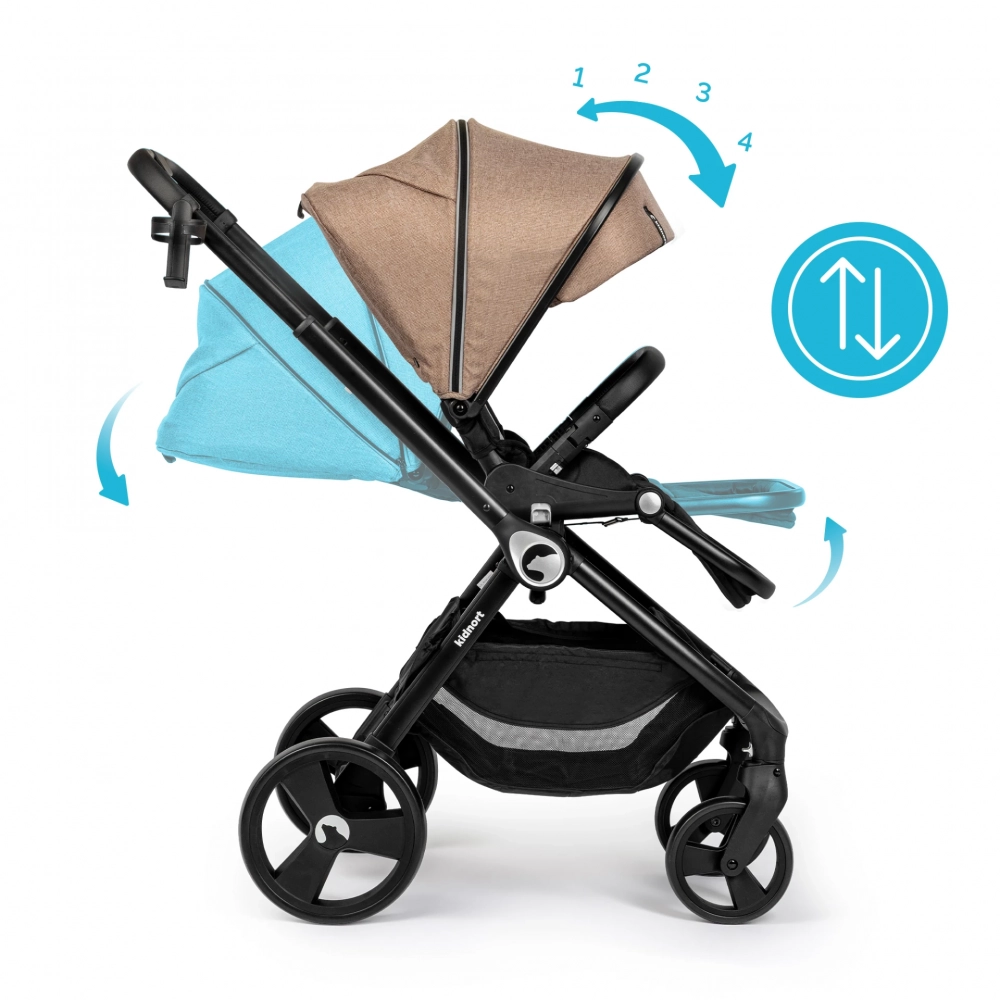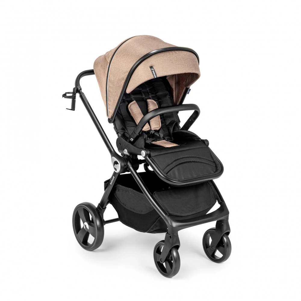 Carucior reversibil pentru copii, cu pliere compacta spatar si viziera reglabile, Kidnort Isbjorn Mocha Mousse, pana la 22 kg, roti cu suspensii, accesorii incluse, suport pentru pahar