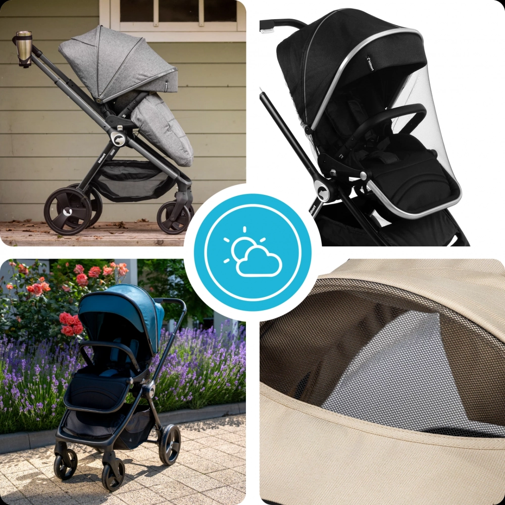 * Accesoriile suplimentare, cum ar fi husa de ploaie si plasa de tantari, fac din acest carucior un insotitor versatil pentru toate anotimpurile.