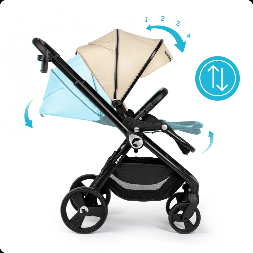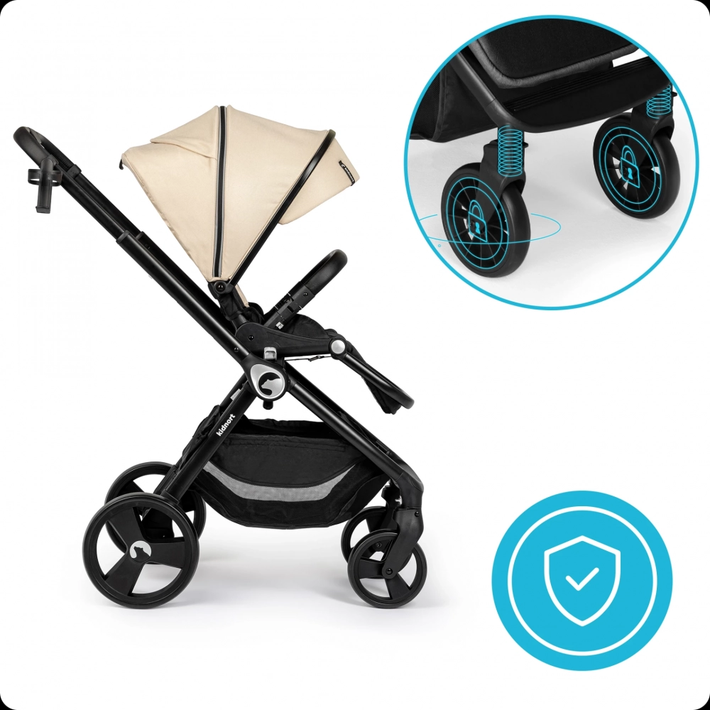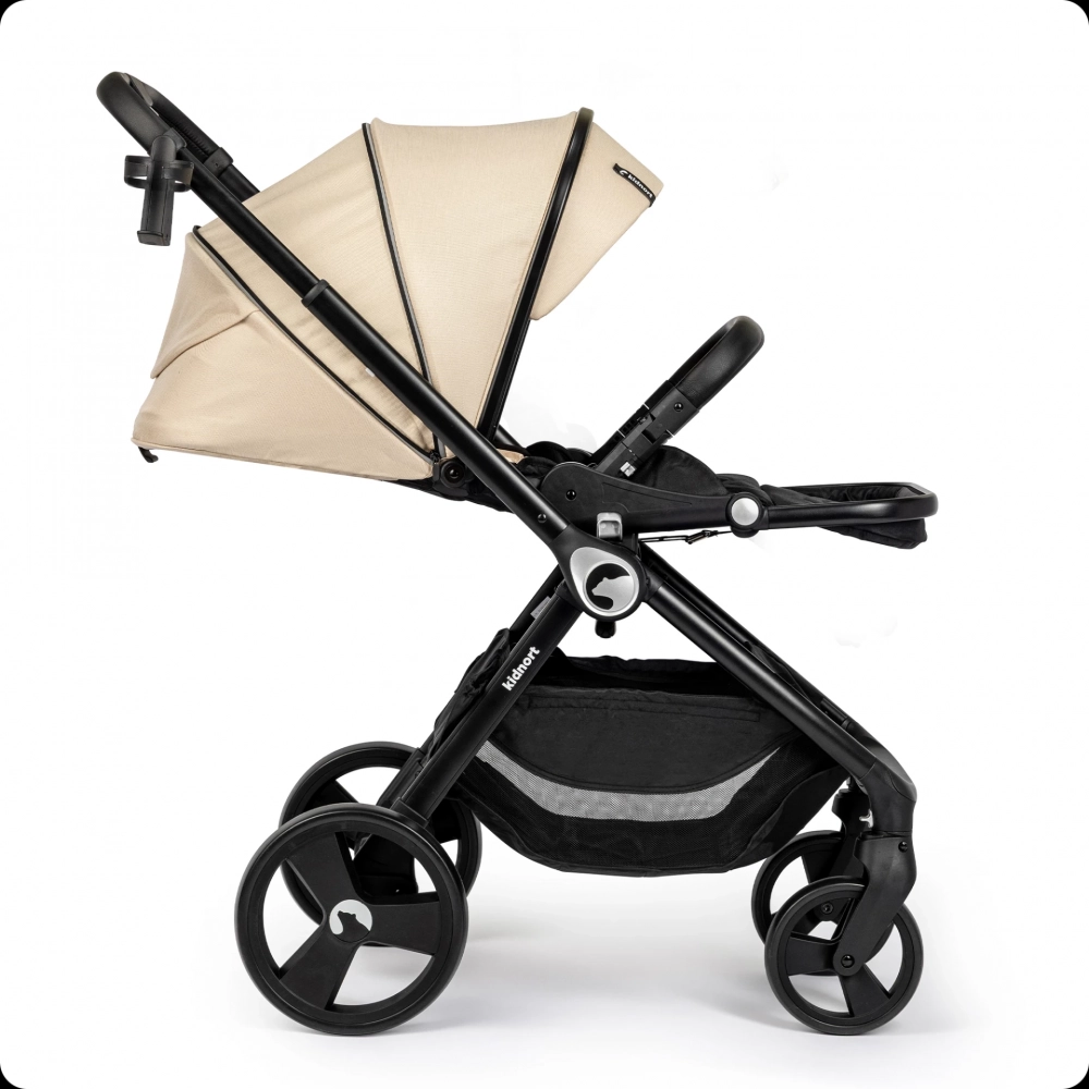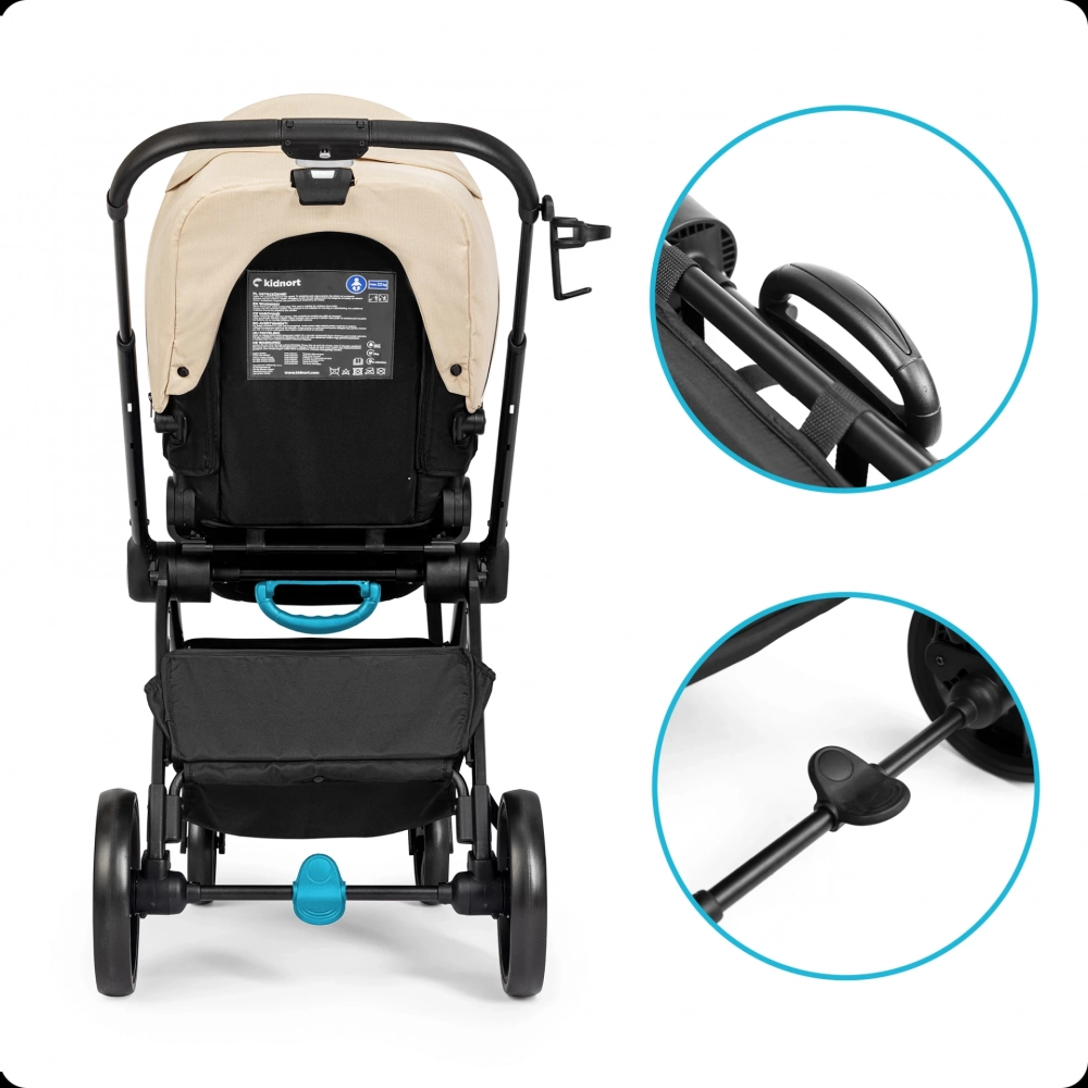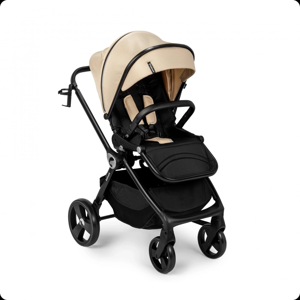 Carucior reversibil pentru copii, cu pliere compacta spatar si viziera reglabile, Kidnort Isbjorn Summer Sand, pana la 22 kg, roti cu suspensii, accesorii incluse, suport pentru pahar