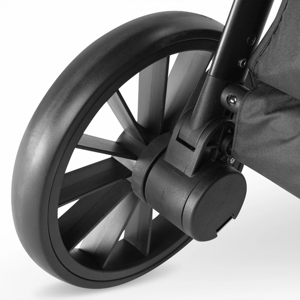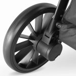 Caruciorul are absorbtie de socuri pe toate rotile, ceea ce ofera copilului un confort ridicat la condus.