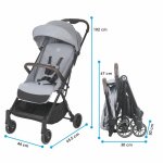 Carucior sport autofold Coccolle Melia, Cadru aluminiu anodizat, Copertina XXL cu protectie UV 50+, Garda la sol mare, Ramane in pozitie verticala dupa pliere, certificat pana la 22 kg, Greystone