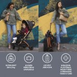 – Accesorii incluse: Capotina, husa, geanta de transport, plasa de tantari, husa de ploaie, cos. Husa usor detasabila si lavabila la 30°C.