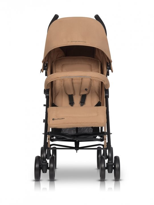 Carucior sport Euro Cart Ezzo cu pliere tip umbrela pozitie de somn si parasolar XXL Camel, spatar reglabil in 3 pozitii, dotat cu husa de picioare, roti cu suspensii