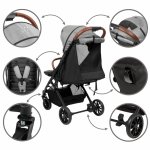 Caruciorul este echipat cu o frana de picior sigura care actioneaza pe ambele roti din spate.