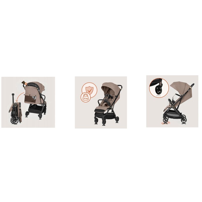 Caruciorul imbina o structura usoara din aluminiu cu detalii cromate si textile premium, rezistente la sifonare. Stil urban modern, gandit pentru parintii care apreciaza si estetica, nu doar utilitatea.