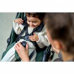 Centurile magnetice in 5 puncte sunt usor de ajustat, ofera stabilitate si nu provoaca iritatii. Copilul poate fi asezat si scos cu usurinta din carucior datorita barierei laterale detasabile.