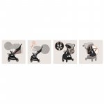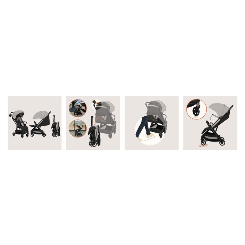 Dupa pliere, caruciorul sta singur, nu trebuie sa-l sustii si nu trebuie sa-ti faci griji cu privire la murdarire. Tapiteria si manerul nu ating solul.