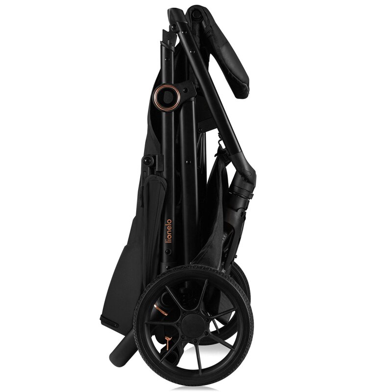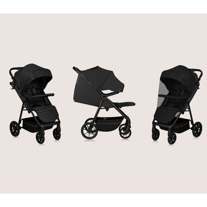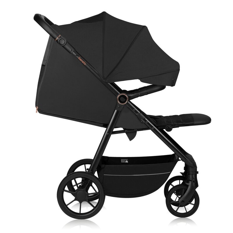 Carucior sport Lionelo Mira Negru, maner reglabil in 5 pozitii, spatar si suport de picioare reglabile, plasa de tantari si suport biberon incluse, Conform cu EN1888-1, EN1888-2, Testare SGS