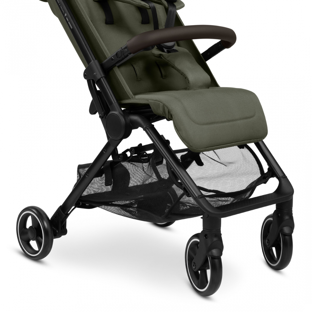 Frana de parcare este amplasata direct pe roata dreapta spate. Acest lucru elimină necesitatea unei axe spate. Acest lucru nu numai că economiseste greutate si spatiu, dar crește si confortul la împingere datorita spatiului nou castigat pentru picioare, în special pentru parintii mai înalti.