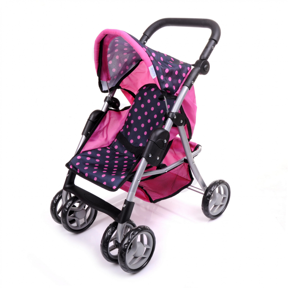 Carucior sport pentru papusi Doris Bulinute roz cu maner reglabil pe inaltime, Capotina ,Spatar reglabil, Cadru din aluminiu, Roti EVA pivotante si silentioase,Cos de cumparaturi,Centura de siguranta,Husa lavabila