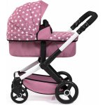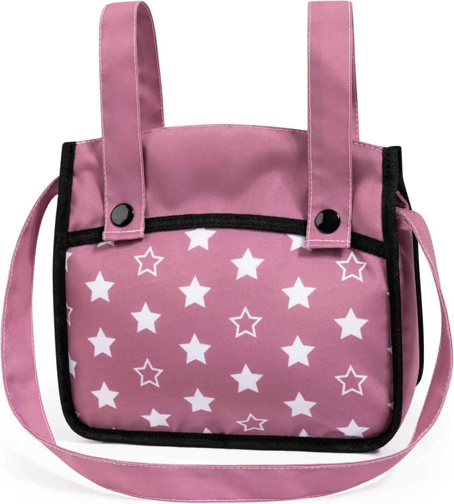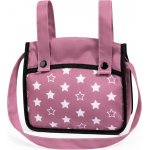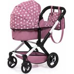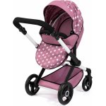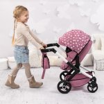 Carucior transformabil 2in1 pentru papusi Bayer Xeo Rosa cu gentuta de umar,maner reglabil 58-71 cm,roti pivotante rezistente,cadru pliabil,pentru papusi de maxim 56cm,dimensiune 68x37x73 cm