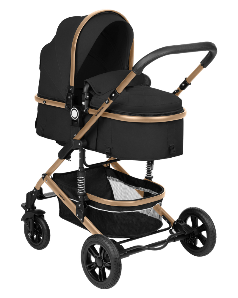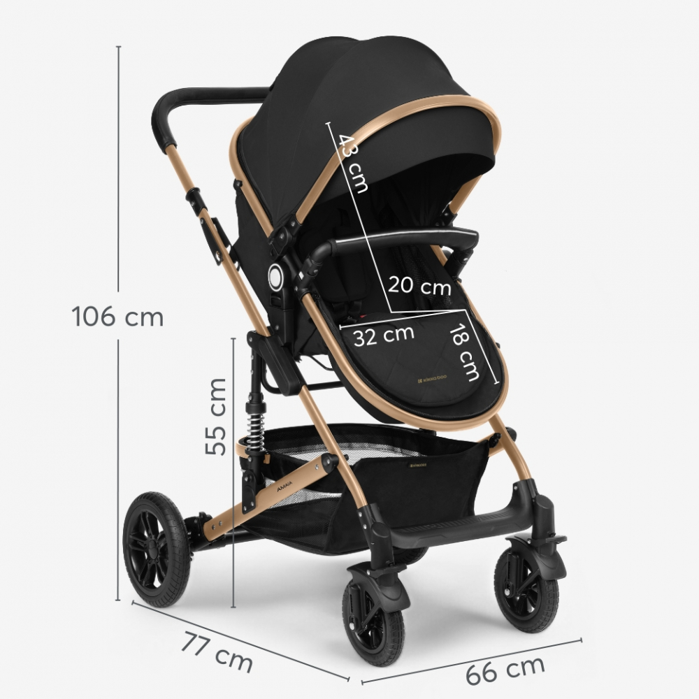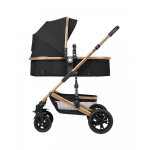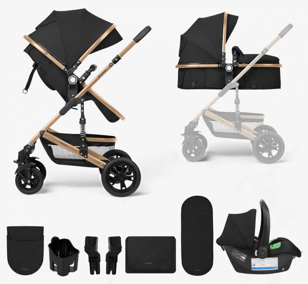 Carucior transformabil KikkaBoo 3in1 Amaia Black 2024 pana la 22kg,cadru din aluminiu,suspensii pe roti si cadru,spatar reglabil,sezut reversibil,Scaun auto I-Size,geanta,suport pahar si accesorii incluse