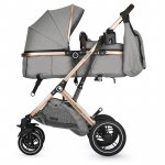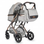 Caruciorul este format dintr-un cadru usor de aluminiu anodizat in culoare aurie, o unitate transformabila care se poate transforma din landou in unitate sport si viceversa in doar cateva miscari si un cosulet auto perfect atat pentru plimbarile cu masina, cat si scurtele escapade pe cadrul caruciorului.