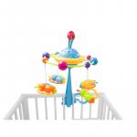 * Caruselul Orbiting are patru jucarii detasabile, iar cea verde zornaie. Ele vor incuraja dezvoltarea simtului vizual si auditiv al bebelusului