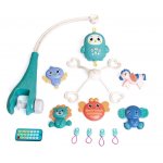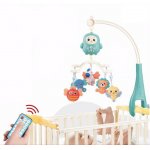 Carusel muzical Doris Blue Pinguin cu telecomanda si prindere universala,jucarii detasabile cu zornaitoare,cutie muzicala cu melodii,temporizator,volum reglabil
