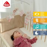 • acest carusel fermecator este decorat cu zane delicate si animalute prietenoase, toate rotindu-se gratios in cerc pe melodia calmanta „Do you know how many little stars there are?”, care aduce o atmosfera de poveste in lumea bebelusului