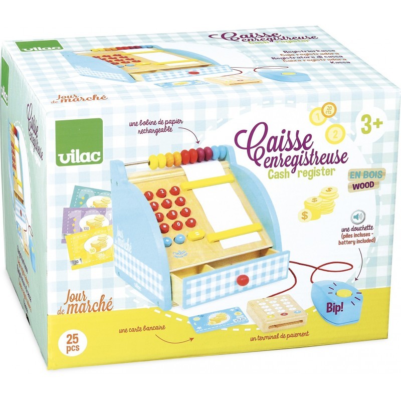 Aceasta casa de marcat din lemn cu accesorii lemn, carton si hartie, este perfecta pentru jocul de rol de-a magazinul.