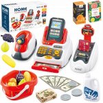 Casa de marcat cu afisaj LCD calculator scanner si 24 de accesorii Home supermarket CheckOut Red