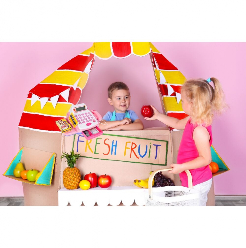 Toate elementele casei de marcat, precum si produsele din magazin sunt usoare si fabricate din plastic, fiind asemenatoare cu produsele reale.