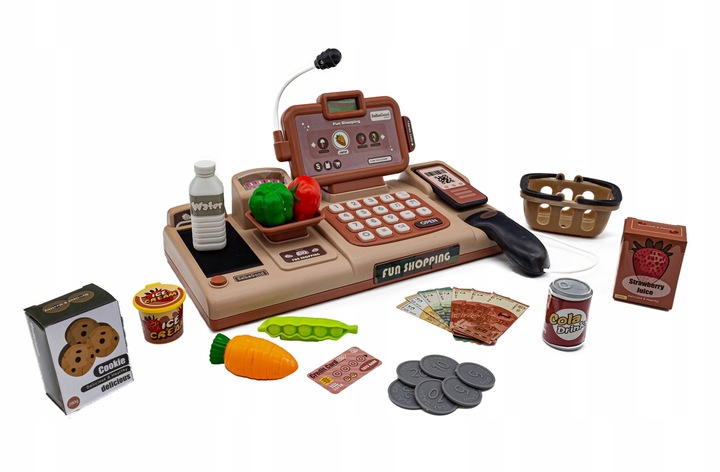 Casa de marcat cu microfon si calculator incorporat Fun Shopping Brown