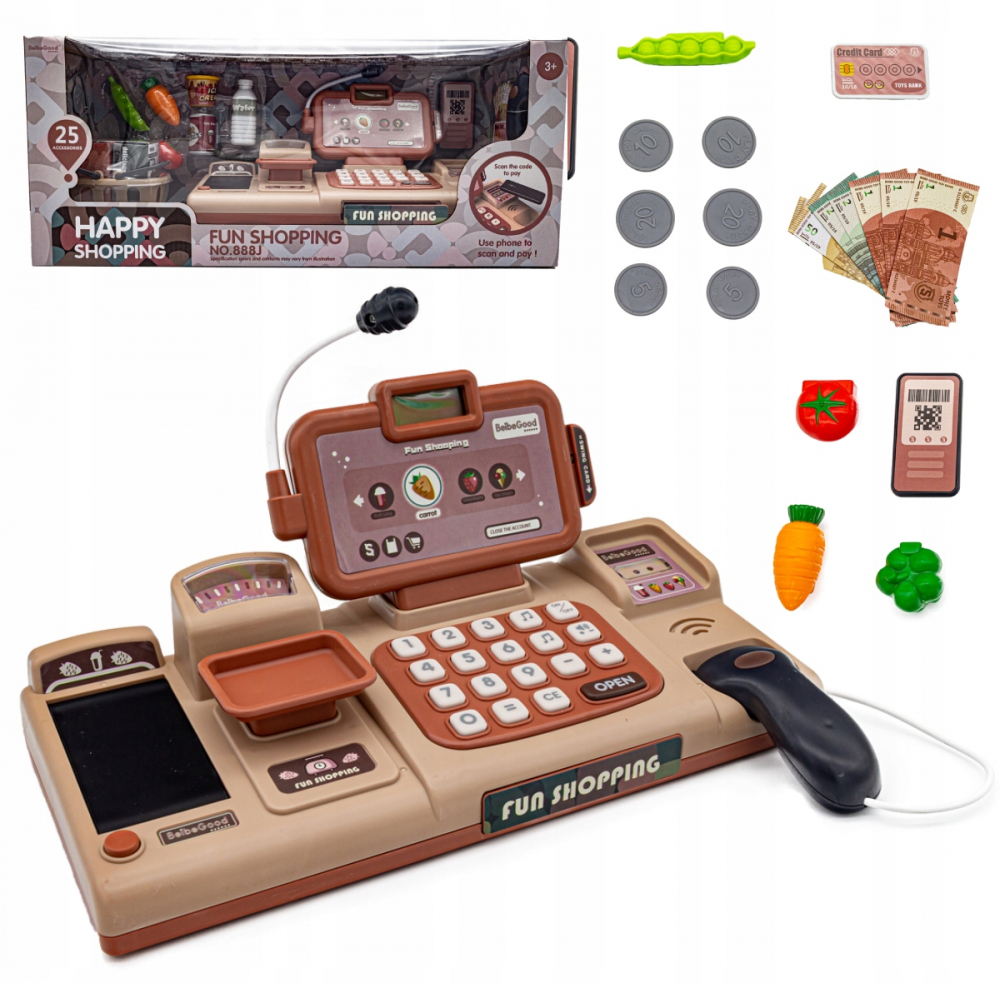 Va prezentam cea mai draguta casa de marcat educationala, echipata cu o 25 de accesorii distincte, datorita carora fiecare copilas va putea sa se joace de-a magazinul oriunde el doreste.