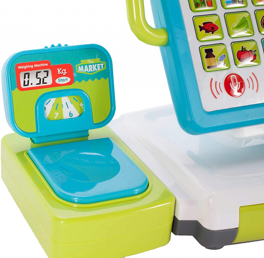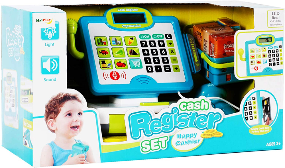 Casa de marcat electronica pentru copii Malplay, cu panou tactil afisaj lcd, scaner si accesorii specifice incluse, dimensiune 33 x 18 x 16 cm