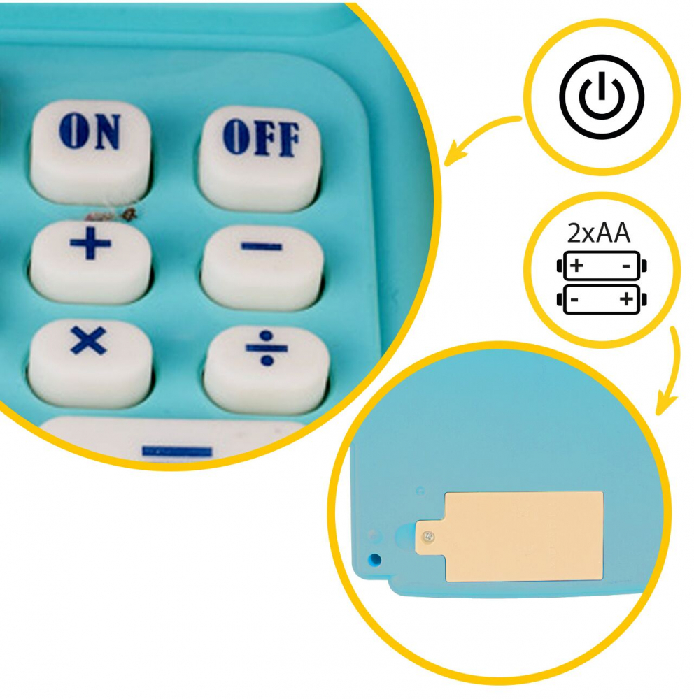 Casa de marcat interactiva cu sertar mobil dotat cu bancnotele si monedele, Scanner cu efecte sonore Fun Cash Blue