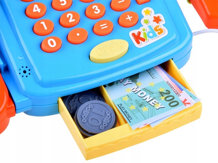 - Cititor de alimente cu sunet: scaneaza produsele cu cititorul si asculta sunetele de casa de marcat. Te vei simti ca intr-un magazin adevarat!