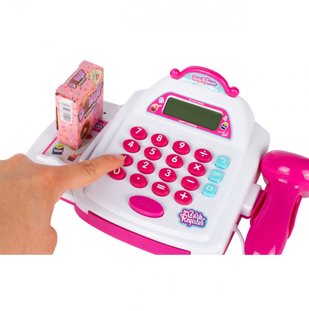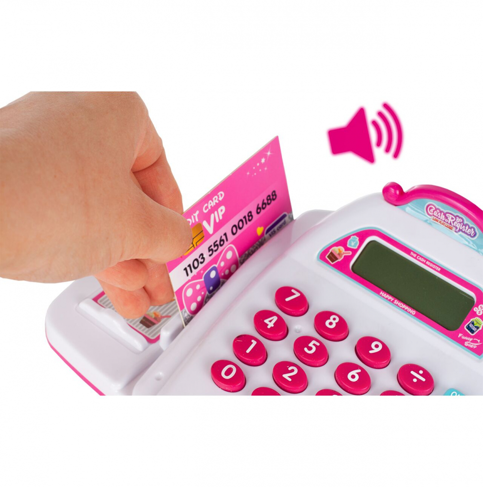 O casa de marcat cu afisaj digital LCD, care functioneaza ca un calculator real. Astfel, copiii mai mari pot exersa operatii matematice simple, cum ar fi adunarea si scaderea.
