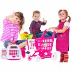 Casa de marcat pentru copii, Malplay, cu afisaj digital lcd, carucior de cumparaturi si accesorii specifice incluse, dimensiune 24.5 x 14.5 x 10 cm