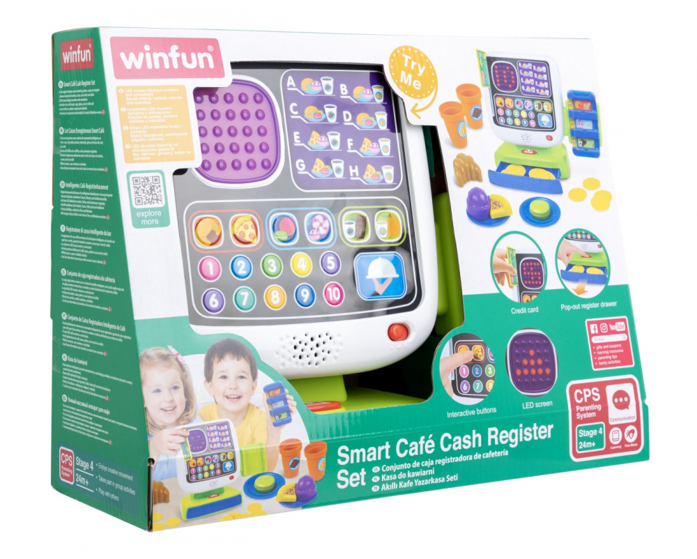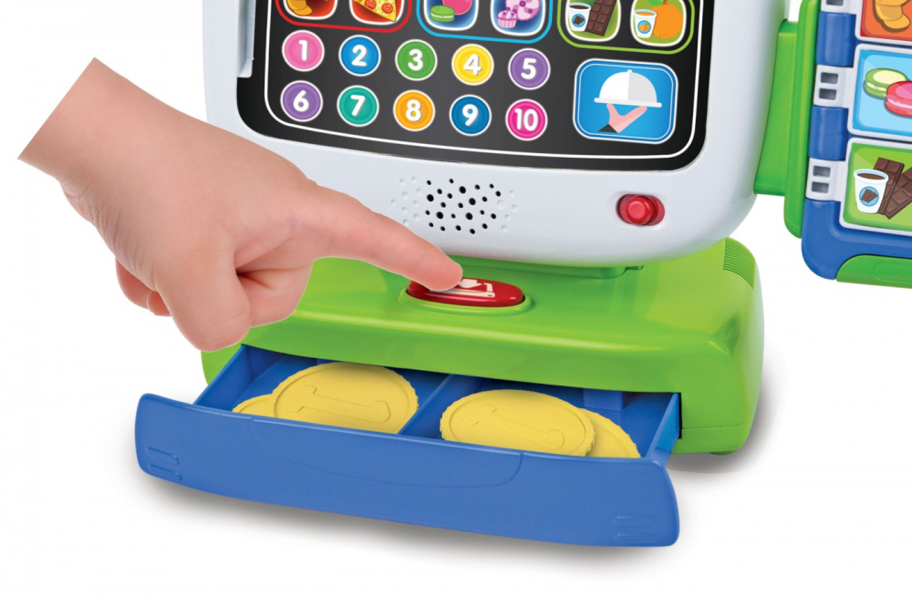 Cu butoane interactive si un design usor de utilizat, copiii pot simula procesul de scanare a produselor, introducerea preturilor si realizarea de tranzactii.