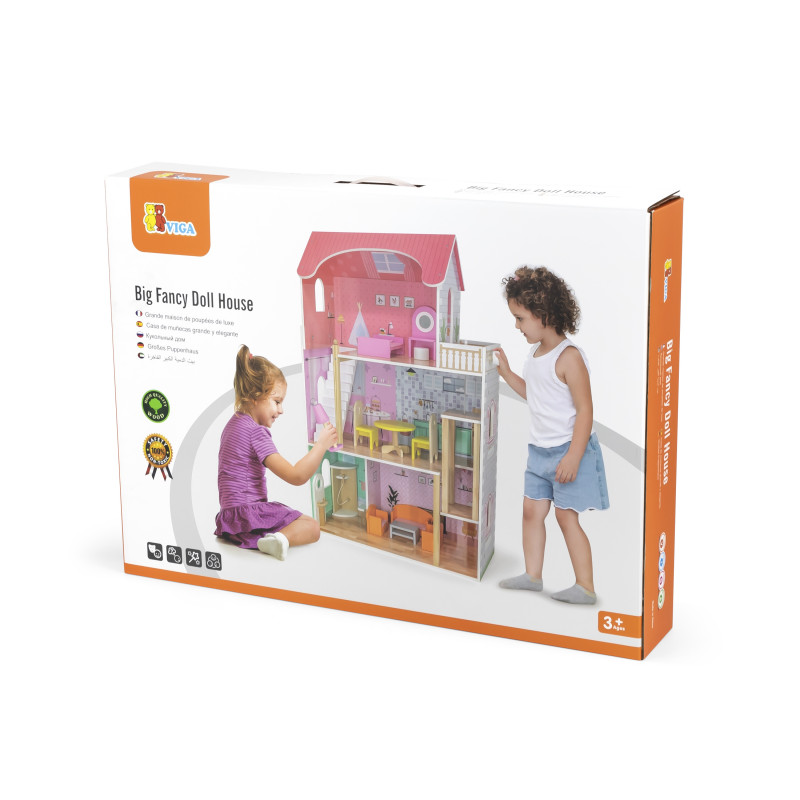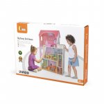 Aceasta casa de papusi din lemn cu pereti deschisi vine in culori dragute, ceea ce o face o optiune atragatoare pentru fete.