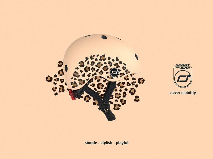 Casca de protectie pentru copii sistem de reglare magnetic cu led XXS-S 45-51 cm 1 an+ Leopard Scoot Ride