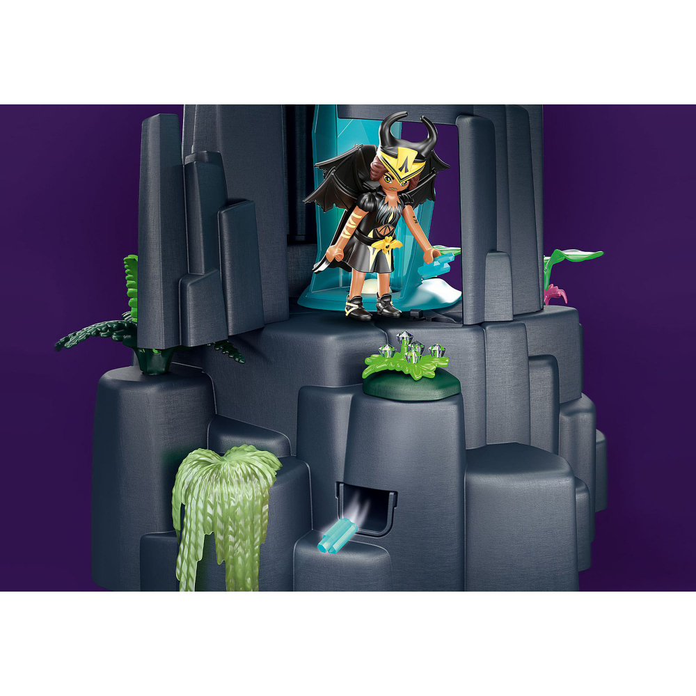 Setul de joc contine o Zana de Cristal cu unicorn, o Zana de Liliac cu salamandra, o Zana de Padure cu libelula, o cascada cu energie magica, functie stralucitoare de cristal si ceata, cristale, cheie magica si multe alte accesorii
