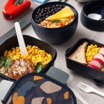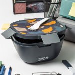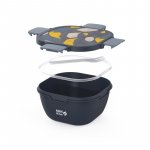 Capacul are cleme pe laterale pentru o închidere sigură în 4 puncte care previne scurgerile în timpul transportului și o furculita încorporată în interior pentru a vă putea bucura de mâncare de fiecare dată.
