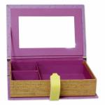 Asemenea unui cufar deosebit, aceasta caseta bijuterii se incuie cu un lacat in forma de inima. In interior, cutia beneficiaza de trei compartimente pentru a depozita accesoriile preferate, iar pe capac are o oglinda eleganta.