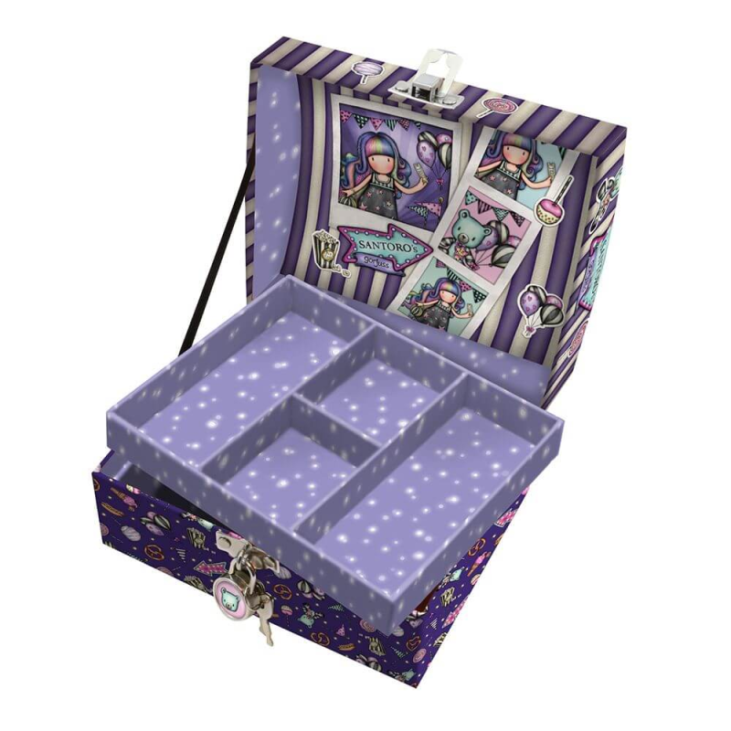 - Un accesoriu esential pentru orice doamna sau domnisoara, aceasta Caseta bijuterii cu lacatel Gorjuss Up and Away este solutia perfecta pentru depozitarea bijuteriilor, accesoriilor si chiar a machiajelor!
