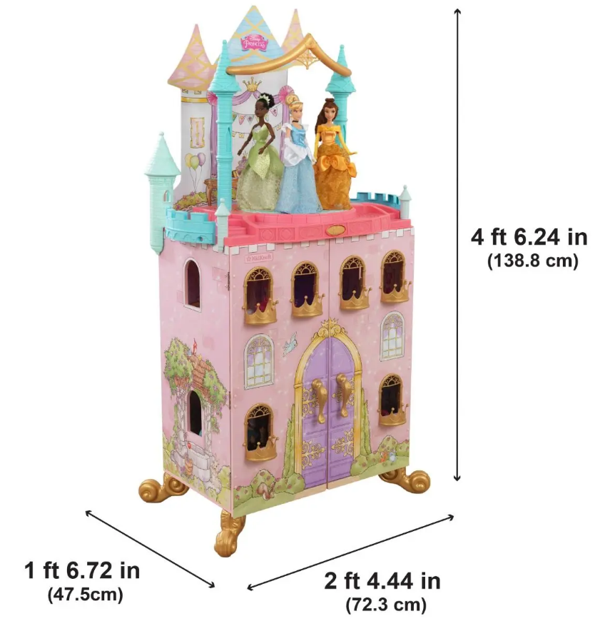 Casa de papusi Disney Princess Dance & Dream de la KidKraft le permite papusilor sa se imbrace in cele mai frumoase tinute ale lor si apoi sa danseze toata noaptea pe acoperis.