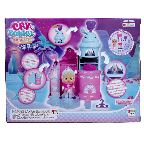 Descopera noul Cry Babies Magic Tears Icy World Castelul de cristal al lui Elodie! Acest set de joaca include personajul exclusivist Elodie, printesa din Icy World! Trageti in sus turnul si folositi lanterna pentru a descoperi imaginea holograma si accesoriile suplimentare! Deschide spatele pentru a dezvalui sala tronului si descoperi mai mult de 8 surprize! Elodie plange lacrimi adevarate!