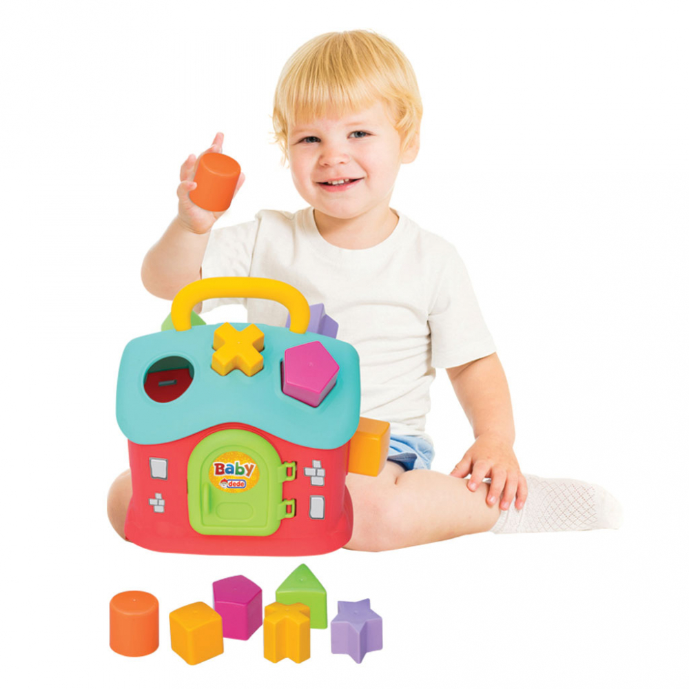 Casuta cu sortator Dede are un design unic si este ideala pentru copii de la varsta de 12 luni