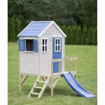 Casuta de gradina My Blue Cottage House cu platforma si tobogan Wendi Toys albastru