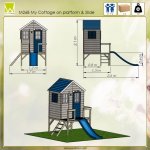 Casuta este echipata cu balcon, ferestre Perspex, ușă întreagă, obloane, placuta cu inscriptia "MY House", scară, tobogan, platformă.