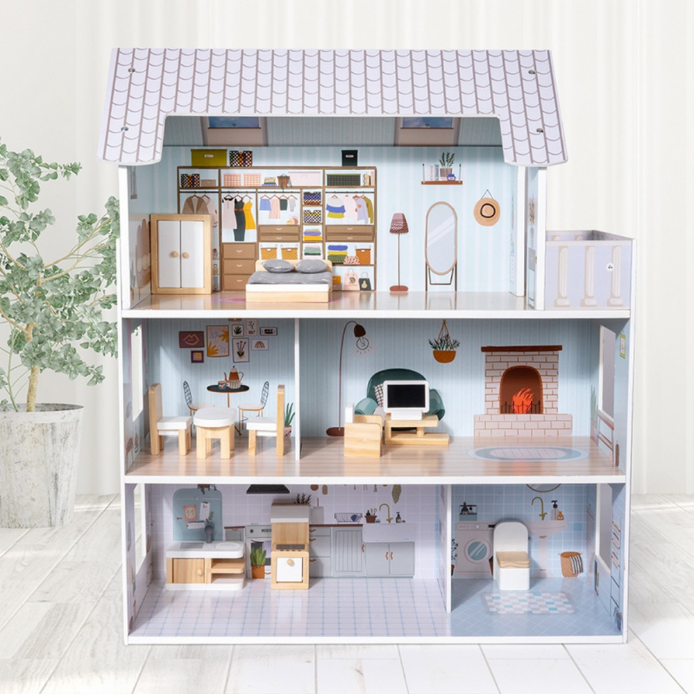 Realizata din lemn natural premium, aceasta casuta spatioasa cu trei etaje, cu un finisaj robust, este locul perfect pentru micii iubitori de papusi si constructorii creativi.