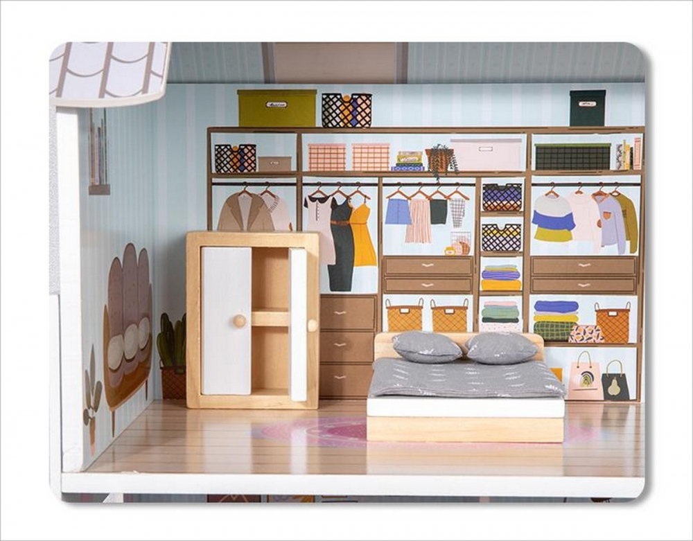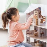 Casuta pentru papusi din lemn marca Sfera Toys, este o jucarie deosebita, care stimuleaza imaginatia si creativitatea copiilor. Aceasta include mobilier detaliat, creand o atmosfera calda si primitoare.