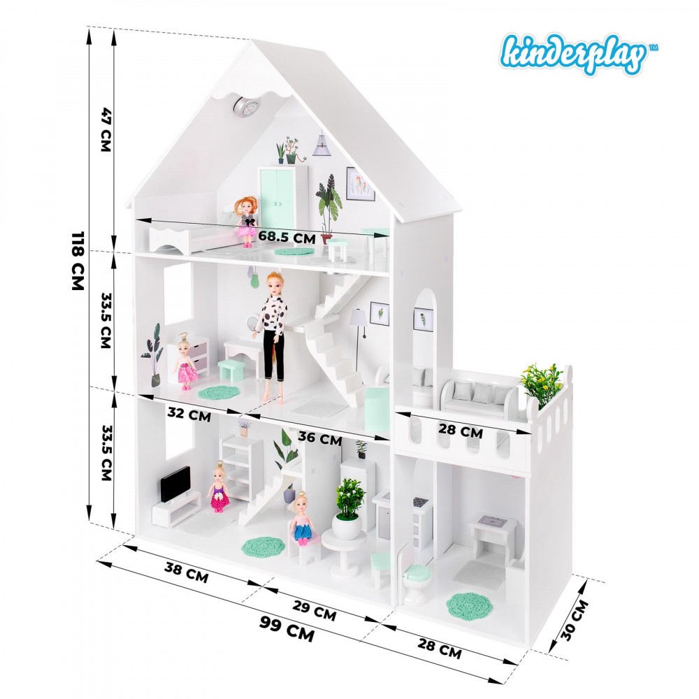 Casuta de papusi din lemn cu 3 nivele LED-uri 118 cm Green