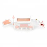 Casuta de papusi Ecotoys inalta din lemn cu mobilier D8112