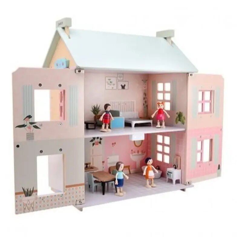 Casuta vine insotita de 4 papusi. Copiii pot crea scenarii si povestiri captivante, imbogatind astfel experienta lor de joc.