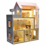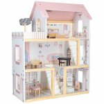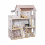 Structura cu Mai Multe Niveluri: Casa se intinde pe 3 sau 4 etaje, oferind spatii vaste si deschise pentru ca papusile sa se mute si sa se joace.