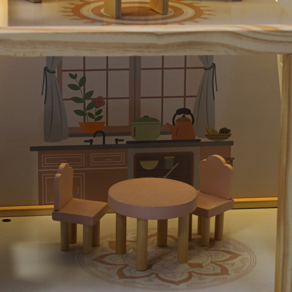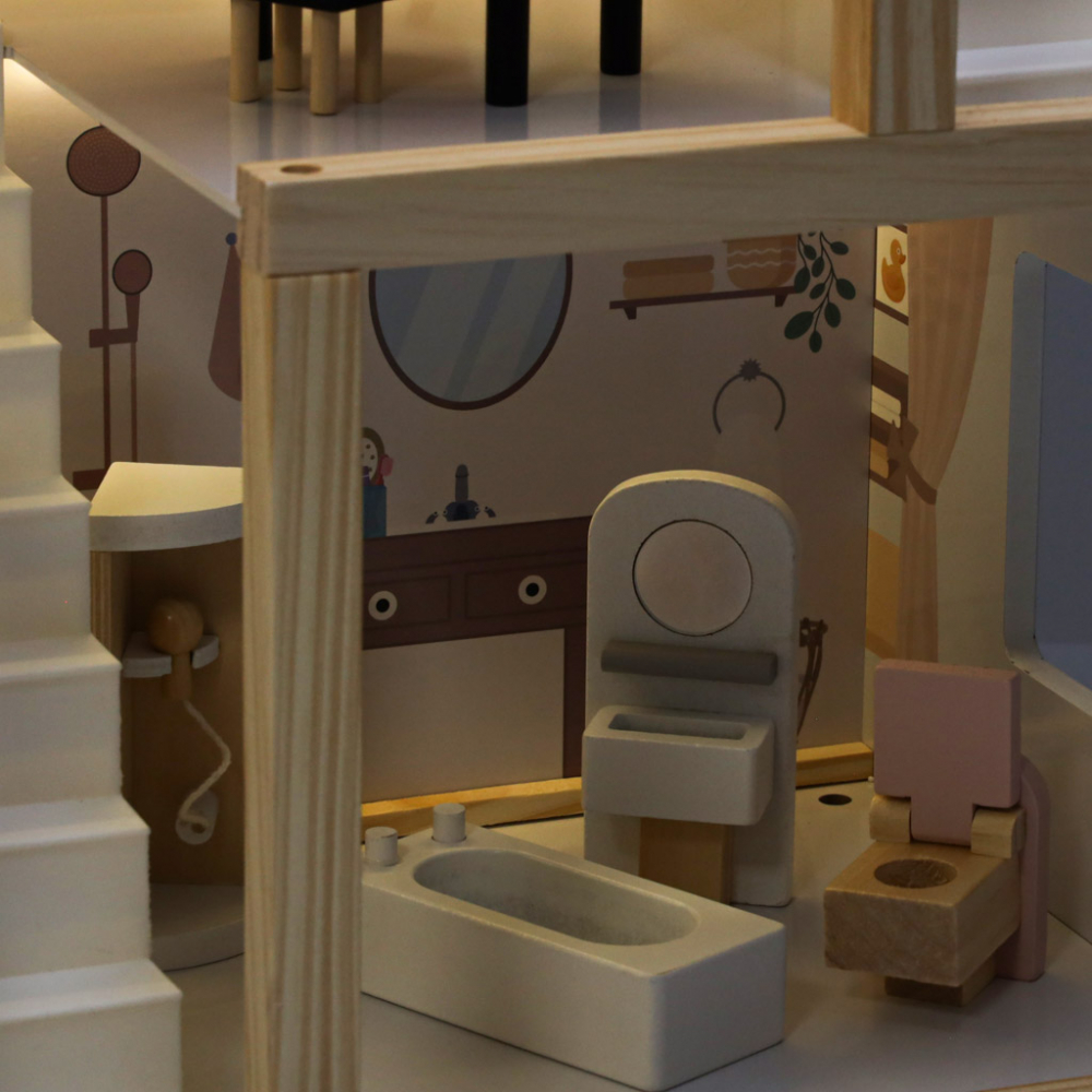Beneficii pentru Dezvoltare: Jocul cu aceasta casa de papusi stimuleaza imaginatia, dezvolta abilitatile motorii fine si incurajeaza colaborarea si invatarea mentinerii ordinii.