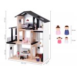 Cu un design modern pe doua etaje si o estetica eleganta in nuante de alb, negru si lemn natural, aceasta casa unica devine un cadou perfect si o piesa decorativa deosebita.